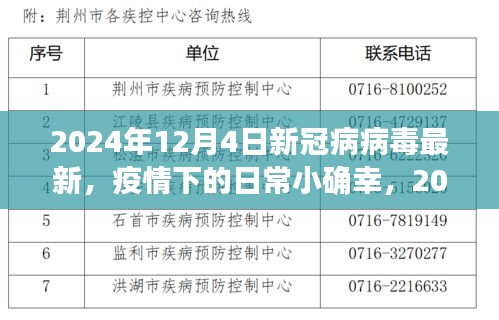 摘要:,,截至2024年12月4日,新冠病毒疫情仍在持續(xù),但人們也在日常生活中發(fā)現(xiàn)了一些小確幸。病毒的新篇章不斷呈現(xiàn),提醒人們保持警惕。當(dāng)前,全球各地都在積極應(yīng)對疫情,努力保護(hù)人們的健康和安全。雖然疫情帶來了諸多挑戰(zhàn),但人們也在努力尋找生活的樂趣和幸福。