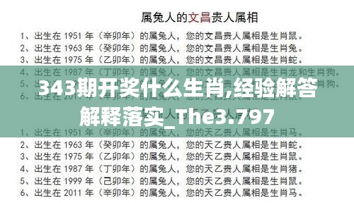 343期開獎什么生肖,經驗解答解釋落實_The3.797