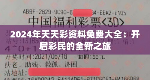 轉載請注明來自上海鹿瓷實業有限公司,本文標題:《2024年天天彩資料免費大全:開啟彩民的全新之旅》