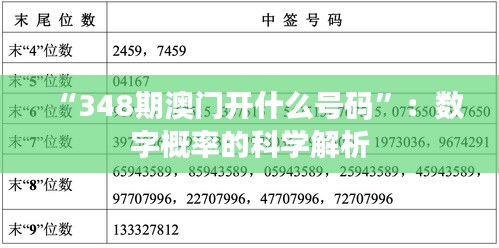 “348期澳門開什么號碼”:數字概率的科學解析