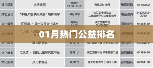 隨著社會的進(jìn)步和人們公益意識的提高,越來越多的公益活動涌現(xiàn)出來,成為推動社會發(fā)展的重要力量,本文將為您介紹01月熱門公益排名,讓我們一起了解這些公益活動的背后故事和它們所帶來的積極影響。