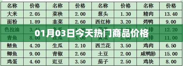 01月03日這一天熱門商品的價格相對合理,消費者可以根據自己的需求選擇合適的商品,消費者在購買商品時,也要關注商品的質量和售后服務,確保自己的購物體驗。
