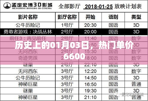 在浩瀚的歷史長(zhǎng)河中,每一個(gè)日期都承載著無數(shù)的故事和事件,我們將目光投向歷史上的01月03日,探尋那一天所發(fā)生的重要事件,以及與之相關(guān)的熱門單價(jià)6600的背后故事。