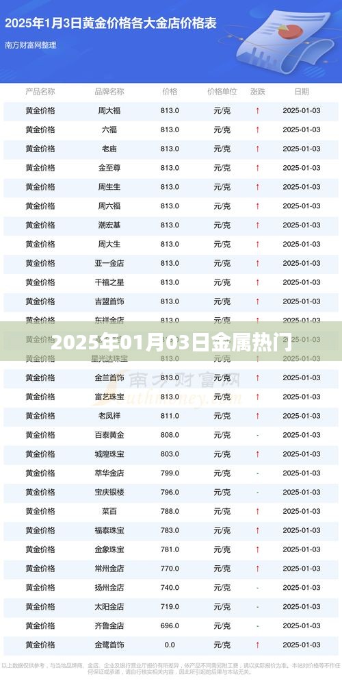 隨著科技的不斷進步和全球經濟的發展,金屬行業始終保持著旺盛的活力,在2025年1月3日這一天,金屬行業又迎來了新的發展機遇,本文將圍繞這一時間點的金屬熱門話題展開,探討金屬行業的發展趨勢、市場狀況以及技術創新等方面。