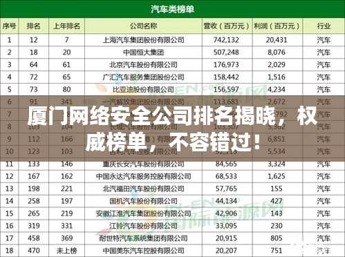 廈門網絡安全公司排名揭曉,權威榜單,不容錯過!