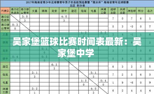 吳家堡籃球比賽時間表的發(fā)布,為籃球愛好者們提供了一個展示自己技藝、增進交流的平臺。希望大家積極參與,共同推動吳家堡籃球運動的發(fā)展。