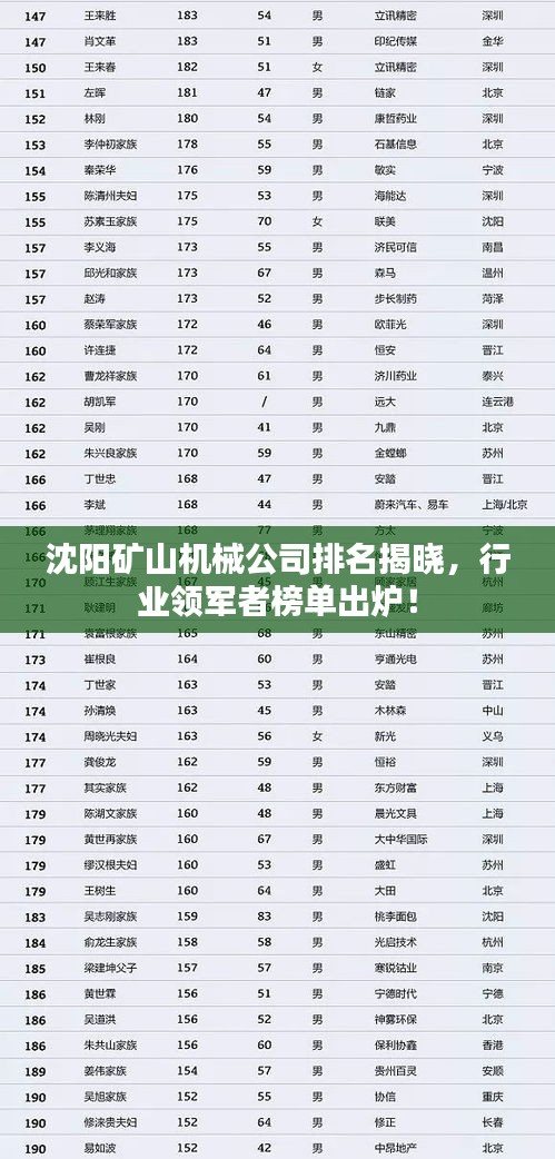 注:以上排名僅供參考,實(shí)際情況可能因各種因素而有所變化,如需了解更多關(guān)于沈陽礦山機(jī)械公司的信息,請查閱相關(guān)資料或咨詢相關(guān)行業(yè)人士。