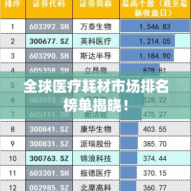 全球醫療耗材市場排名榜單揭曉!