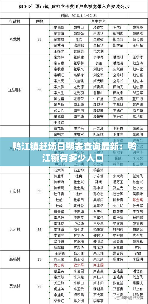 轉(zhuǎn)載請注明來自上海鹿瓷實業(yè)有限公司,本文標題:《鴨江鎮(zhèn)趕場日期表查詢最新:鴨江鎮(zhèn)有多少人口 》