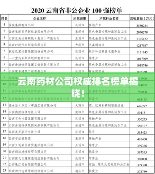 云南,這片充滿神奇與活力的土地,不僅擁有得天獨(dú)厚的自然資源和美麗的風(fēng)景名勝,更是中醫(yī)藥材的寶庫(kù),云南的藥材公司在國(guó)內(nèi)外享有很高的聲譽(yù),它們以其優(yōu)質(zhì)的產(chǎn)品、專業(yè)的服務(wù)和良好的市場(chǎng)口碑贏得了廣大客戶的信賴,我們將為您揭曉云南藥材公司的排名。