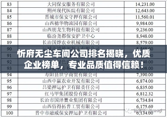 根據(jù)以上依據(jù),以下是忻府無塵車間公司的排名(按字母順序):