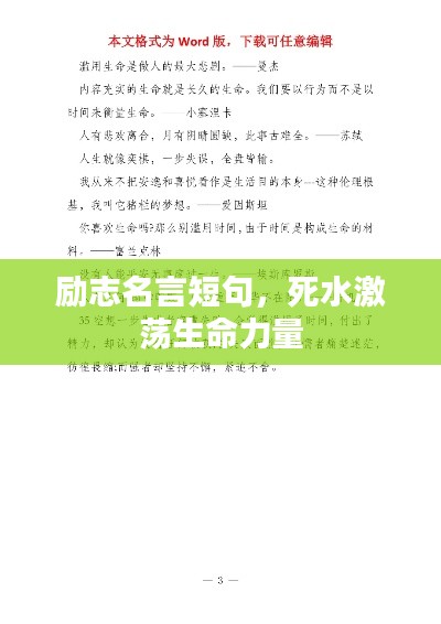 讓我們一起銘記這些死水勵(lì)志語錄短句,讓它們成為我們前進(jìn)的動(dòng)力和座右銘,無論面對(duì)何種困境和挑戰(zhàn),我們都要堅(jiān)定信念,勇往直前,因?yàn)槿松缢浪灰覀冃膽鸭で?,?lì)志前行,就一定能夠見證非凡的人生。