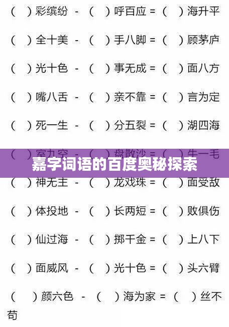 隨著科技的日新月異,我們的生活已經(jīng)離不開(kāi)互聯(lián)網(wǎng),當(dāng)我們遇到生詞或者想要了解某個(gè)詞語(yǔ)的更多含義和用法時(shí),百度搜索成為了我們的首選工具,我們就來(lái)“百度一下”帶有“嘉”字的詞語(yǔ),探尋這些詞語(yǔ)的豐富內(nèi)涵。