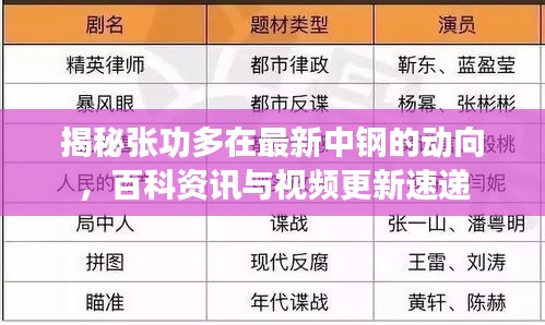 揭秘張功多在最新中鋼的動向,百科資訊與視頻更新速遞