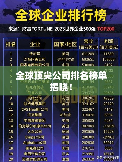 隨著全球經(jīng)濟一體化的進程不斷加速,國外的精英公司在全球范圍內(nèi)的影響力日益擴大,這些公司以其卓越的經(jīng)營業(yè)績、創(chuàng)新能力和市場地位,在全球范圍內(nèi)贏得了廣泛的贊譽,以下是國外精英公司的排名,以供參考。