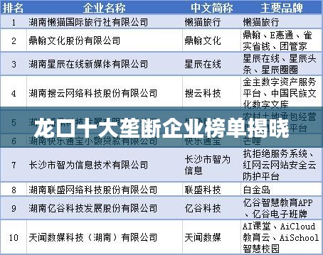 龍口市作為山東省的一個重要城市,經濟發展迅速,吸引了眾多企業的入駐,隨著市場競爭的加劇,一些企業逐漸形成了壟斷地位,以下是龍口壟斷企業排名前十名,這些企業在市場上占據較大份額,具有較強的競爭力和影響力。