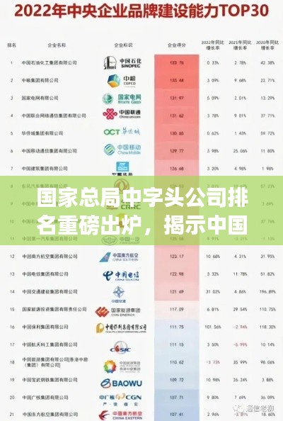 是國家總局中字頭公司排名的一部分,這些企業在各自的領域內都具有極高的競爭力和影響力,它們不僅為國家經濟發展做出了重要貢獻,而且在全球范圍內也展現出了強大的競爭力,這些企業將繼續發揮重要作用,推動中國經濟的高質量發展。