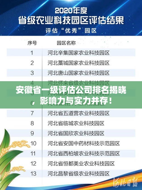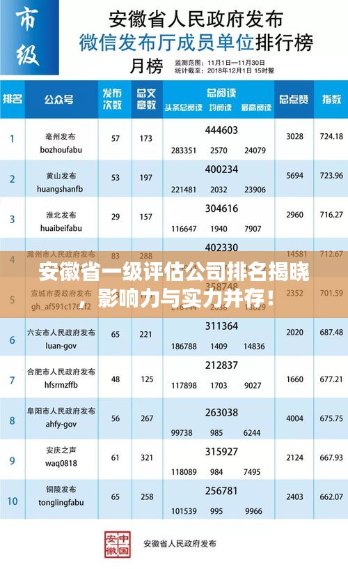 安徽省,作為中國的重要省份之一,經濟發展迅速,各類企業如雨后春筍般涌現,在一級評估公司領域,安徽省內有多家表現突出的企業,它們在業內享有盛譽,為客戶提供優質的服務,本文將對安徽省一級評估公司的排名及其影響力進行探討。