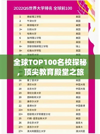 在全球化的時代背景下,教育資源的交流與競爭愈發激烈,世界名校作為培養杰出人才的搖籃,其排名情況一直備受關注,本文將從多個角度剖析世界名校排名TOP100,帶您領略全球頂尖教育殿堂的魅力。
