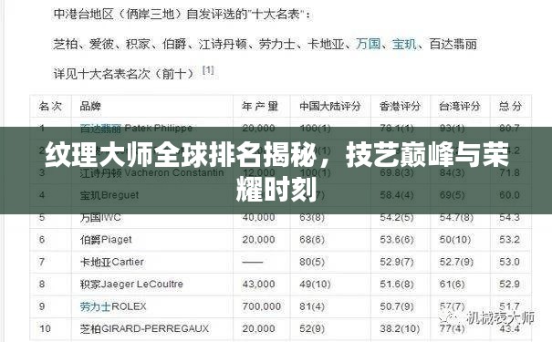 紋理大師全球排名揭秘,技藝巔峰與榮耀時刻