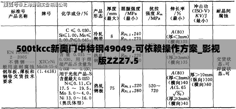 新奧門中特鋼49049是一種低合金高強度鋼,具有優異的機械性能和焊接特性。其化學成分中添加了鎂、鉻和鉬等元素,使得鋼材的耐磨性和抗沖擊性顯著提升。500TKCC指的是該鋼材在不同環境和條件下的力學性能,尤其是其抗拉強度和屈服強度。這一指標對于評估鋼材在承受外力時的表現十分重要。