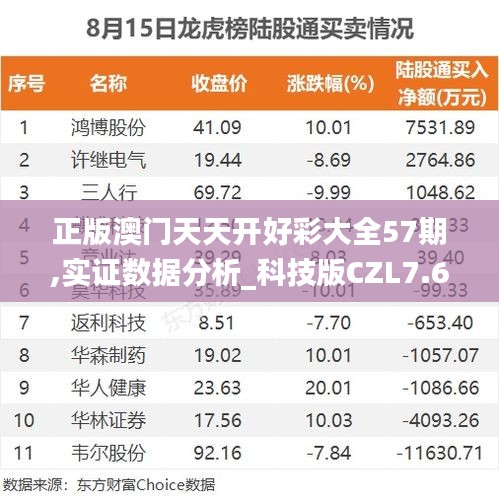 正版澳門天天開好彩大全57期,實證數據分析_科技版CZL7.60