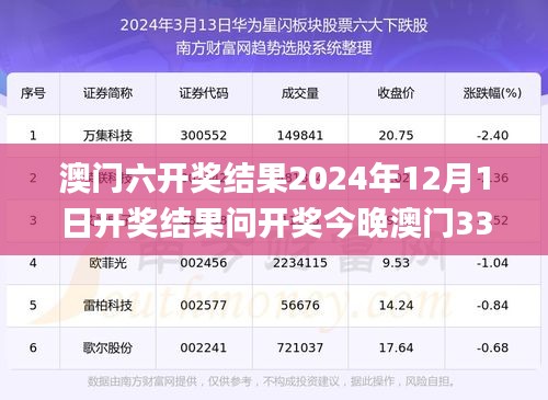 隨著澳門六開獎的日益臨近,眾多彩民的目光聚焦于即將到來的2024年12月1日的開獎結果,這一日的開獎不僅關乎彩民的期待,更是彩票市場購彩趨勢的重要風向標,為了更準確地預測這一日的開獎結果,我們可以從歷史數據出發,進行深入的分析。